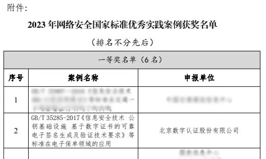 数字认证荣获一等奖!2023年网络安全国家标准优秀实践案例获奖名单今日公布