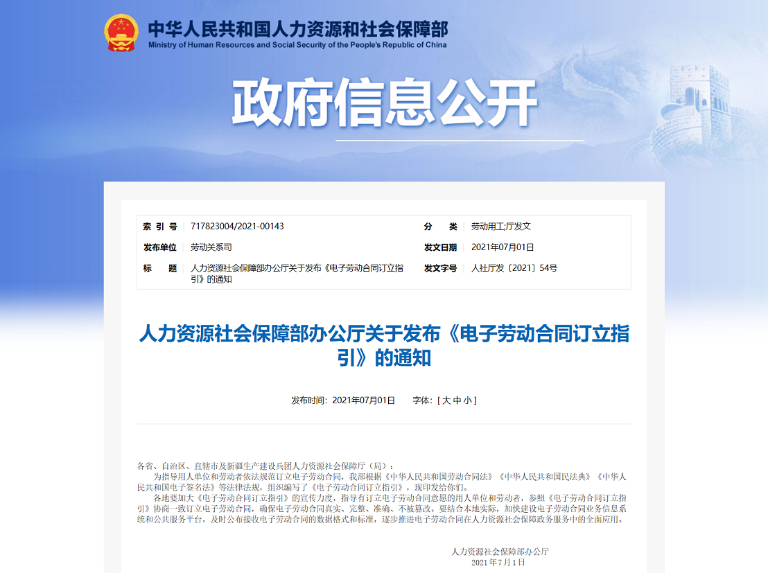 近日,人力资源社会保障部办公厅印发《电子劳动合同订立指引》(简称“《指引》”)的通知,其中明确:“各地要加大《电子劳动合同订立指引》的宣传力度,指导有订立电子劳动合同意愿的用人单位和劳动者,参照《电子劳动合同订立指引》协商一致订立电子劳动合同,确保电子劳动合同真实、完整、准确、不被篡改。”